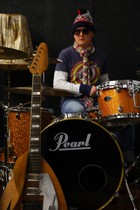 Auch Harry Payuta kenne ich schon mindestens 27 Jahre lang. Ist ja auch ein Bremer Urgestein, der in so vielen Projekten gespielt und viele Dinge ausprobiert hat – auch heute noch. Er hat übrigens auch bei dem Album „Lavender“ von THE PERC MEETS THE HIDDEN GENTLEMAN 1991 mitgespielt, damals noch als Chooby Harry. Das war zu der Zeit sein Künstlername bei den VEEJAYS, einer wirklich großartigen Band irgendwo zwischen Rockabilly und Garage, die eine Weile Tav Falco begleitet haben. Die Veejays waren übrigens Anfang der Neunziger zusammen mit The Pachinko Fake und The Perc Meets The Hidden Gentleman bei Strange Ways Records unter Vertrag, wir waren also quasi Labelmates und haben öfter auf den selben Veranstaltungen gespielt. Da lernt man sich natürlich besser kennen, und Harry war meine erste Wahl als Bassist, als wir 1996 The Electric Family gegründet haben. Da war er schon ein meisterhafter Didjeridoo-Spieler, und das war wirklich eine wunderbare zusätzliche Klangfarbe - sowohl live als auch auf Tonträger. Harry war bis 2000 bei allen Konzerten und Platten dabei, danach startete er seine Karriere als Solist und hat bis heute fast ein Dutzend Alben herausgebracht. Inzwischen zählt er zu den besten Rock-Sitaristen, und ich bin sehr froh, dass er dabei ist. Mehr zu Harry gibt’s unter www.payuta.de.