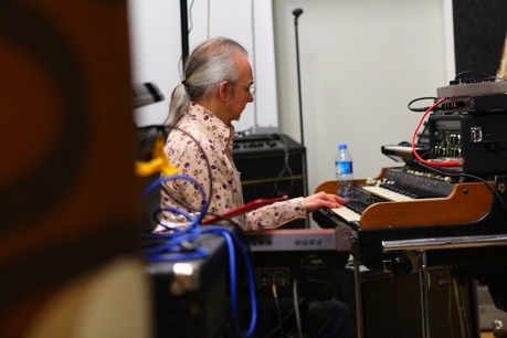Und dann haben wir noch Anders Becker, der auf dem Album die Tasten drückt. Anders ist nach dem verstorbenen Volker Kahrs der erste Voll-Keyboarder in der Band, und er macht einen sagenhaften Job! Für ihn kommen nur analoge Keys in Frage, das braucht Platz und Muskelkraft. Aber das, was er seinen Kisten entlockt, ist einfach großartig. Er spielte früher bei der Mandra Gora Lightshow Society, hat aber noch seine eigene Band Liquid Orbit, die gerade ihr Debütalbum herausgebracht hat.