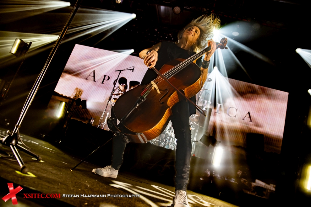 APOCALYPTICA starten mit „Ashes of the Modern World“ und machen sofort deutlich, dass ihr nun folgendes Programm nicht zum Durchschnaufen der Fangemeinde tauglich ist. Mit Blick in die Augen der Hauptakteure wird zudem klar, wie sehr die Band auf diese Tour hingefiebert hat. Die Nebelkanonen laufen hier auch erfreulicherweise nicht mehr am Anschlag, so dass die Effekte der LED-Wall besser zur Geltung kommen als dies bei EPICA der Fall war.