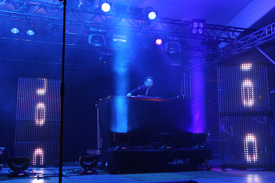 Die wohl niveauvollste musikalische Darbietung des ganzen Festivals findet im Staatenhaus mit CONJURE ONE statt. Das ist eines der Projekte von Rhys Fulber, den man natürlich von FRONT LINE ASSEMBLY (die den diesjährigen Auftritt bekanntlich abgesagt hatten) und DELERIUM, aber auch als Produzent von harten Bands wie FEAR FACTORY und PARADISE LOST kennt. CONJURE ONE ist musikalisch recht ruhig gehalten, atmosphärische, trippige Electro- und Ambientklänge vermischen sich mit überdeutlichen Weltmusik-Einflüssen. Während Fulber an seinem Pult die Knöpfchen dreht, steht auf der Bühne eine Sängerin - ist es wirklich Leah Randi, die da mit adretter Frisur und schwarzem Kleid steht? - und begleitet die Soundscapes mit ihrer schönen Stimme. Fulber hat sich nicht nur Songs von CONJURE ONE selbst vorgenommen, sondern auch abgeänderte Versionen von DELERIUM- und FLA-Songs. Die wirklich schön zu hörende Musik ist jedoch eher etwas für Kenner und Genießer und nichts für das Partyvolk, so dass die Stimmung entsprechend eher andächtig bleibt.
