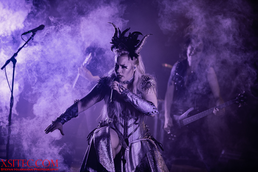 BATTLE BEAST haben sich ihrerseits auch nicht lumpen lassen und eigenes Bühnenlicht mit nach Bochum gebracht. Zusätzlich stehen auf der Bühne farbig illuminierte Nebelfontänen, die der Show zusätzliche Effekte verleihen. Noora Louhimo glänzt mit eindrucksvollem Gesang, der druckvoll und voller stimmlicher Facetten ist. Die Frontlady scheut sich auch nicht, die teilweise schwindelerregenden Tonhöhen, bei der viele ihrer Kolleginnen schlicht passen müssten, auch „Live“ auf die Bühne der Zeche zu bringen.