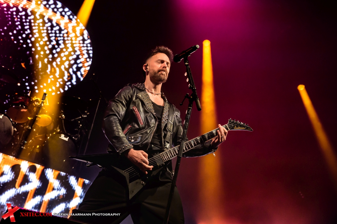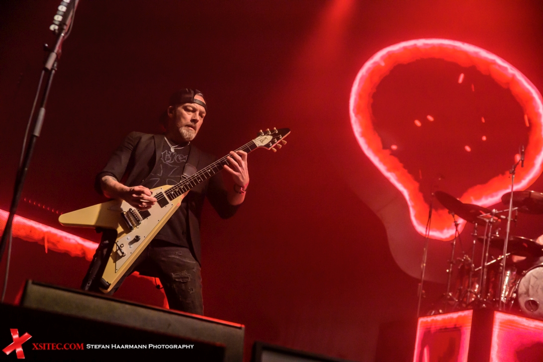 Die Vermutung, dass der Abend aufgrund der Songauswahl berechenbar sein könnte, ist zwar naheliegend, kann aber mit Blick auf die Show ins Reich der Fabel verwiesen werden, da die Tracks immer wieder durch unerwartete Wendungen und Improvisationen um weitere Facetten bereichert werden, die so nicht zu erwarten waren, Hinzu kommen die visuellen Effekte der LED-Wand, die für optische Highlights sorgen und die Wucht des Songmaterials noch verstärken. Nicht von ungefähr verhalt das an diesem Abend zelebrierte Debüt aus dem Jahr 2005 der Band vor genau 20 Jahren zum weltweiten Durchbruch. Songs wie „Tears Don´t Fall“ oder „10 Years Today“ zeigen das gesamte Potenzial der Waliser, denen gegen Ende der Show mit „Cries In Vain“ und „The End“ die Halle zu Füßen liegt. Die Zugabe gleicht mit „Knives“ und dem finalen „Waking The Demon“ einem wahren Triumphzug.