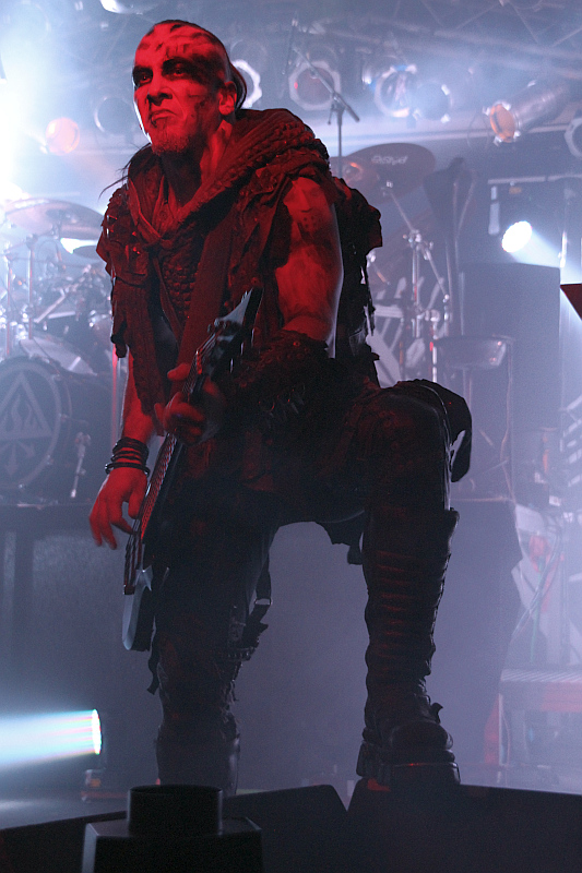 Auch CRADLE OF FILTH sind in diesem Billing nicht unumstritten. Dem trven Schwarzmetaller sind die Briten um Giftzwerg Dani Filth wohl zuviel Kasperletheater und mit Danis extremem Gekreisch muss man eh erst einmal klar kommen. Ziemlich überraschend ist indes, dass er heute Abend selbst die kreischigsten Passagen unerwartet gut meistert, das war in der Vergangenheit nicht immer der Fall und auch auf den letzten Studioalben klang das nicht mehr ganz so derb wie früher. A propos früher, die Teilnahme an der Tour steht für CRADLE OF FILTH, die mit zwei Sessiongitarristen unterwegs sind, im Zeichen des 20-jährigen Jubiläums des Debütalbums "The Principle Of Evil Made Flesh", dementsprechend werden nach dem Opener "Cthulu Dawn" mit "A Dream Of Wolves In The Snow", "Summer Dying Fast" und dem Titeltrack gleich drei Stücke hintereinander daraus dargeboten. Starker Einstieg, dem man mit "Beneath The Howling Stars" einen weiteren alten Klassiker hinterherjagt. Weil Frontmann Filth nicht gerade groß gewachsen ist, steigt er immer wieder auf kleine Emporen, ansonsten hüpft er wie ein Duracell-Häschen auf Speed über die Bühne, was schon recht ulkig wirkt. Der Rest seiner Band übt sich in Posen und Banging, die hübsche Keyboarderin ist in der linken Bühnenecke aber nur zu erahnen. Das Oldschool-Programm wird kurz mit dem neuen "For Your Vulgar Delectation" und dem unnötigen, weil heute zu lahmen "Nymphetamine" unterbrochen, danach darf man sich an "Born In A Burial Gown", dem superben "Cruelty Brought Three Orchids", dem obligatorischen Hit "Her Ghost In The Fog" sowie der Zugabe "Funeral In Carpathia" erfreuen. Starke Setlist also, die ebenso stark dargeboten wird, was für reichlich Applaus im wieder vollen Auditorium sorgt. Dass CRADLE OF FILTH so gut abräumen, darf man also getrost als Überraschung des Abends werten.