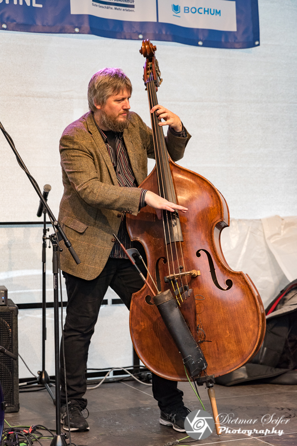 Als ich am Freitag in die Stadt fuhr, war ich zwar dementsprechend gekleidet, aber der dauernde Regen war dennoch ziemlich nervig. Leider sahen das die erwarteten Besucher genauso und blieben einfach weg. Der erste von mir besuchte Gig auf der Bochum Marketing Bühne war festivalüblich etwas spät dran. Der Platz vor der Bühne, welcher mit Tischen und Stühlen eigentlich zum Verweilen einladen sollte, und auch die Treppe hinauf zum Massenberg-Boulevard, auf der sonst Scharen von Menschen sitzen und stehen, waren aber bis auf sage und schreibe vier Besucher menschenleer. Wie ich so oben an der Treppe stand, dachte ich mir: „Ihr seid hier und spielt und ich stehe hier oben rum. Da ich zum Fotografieren hier bin und ihr um Musik zu machen, habt ihr es auch verdient, dass ich auch ein paar Fotos mache.“.
