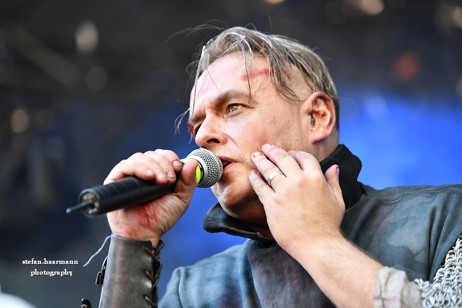Die beiden Sackpfeifen werden in bewährter Art eingesetzt und akzentuieren den typischen TANZWUT-Sound, der hier im Schloßhof eine Menge Anhänger hat. „Steig Ein“, „Bruder Leichtsinn“, und „Reiter Ohne Kopf“ zünden unter Livebedingungen extrem gut und sorgen für strahlende Gesichter der Fans. Ein starker Auftritt.