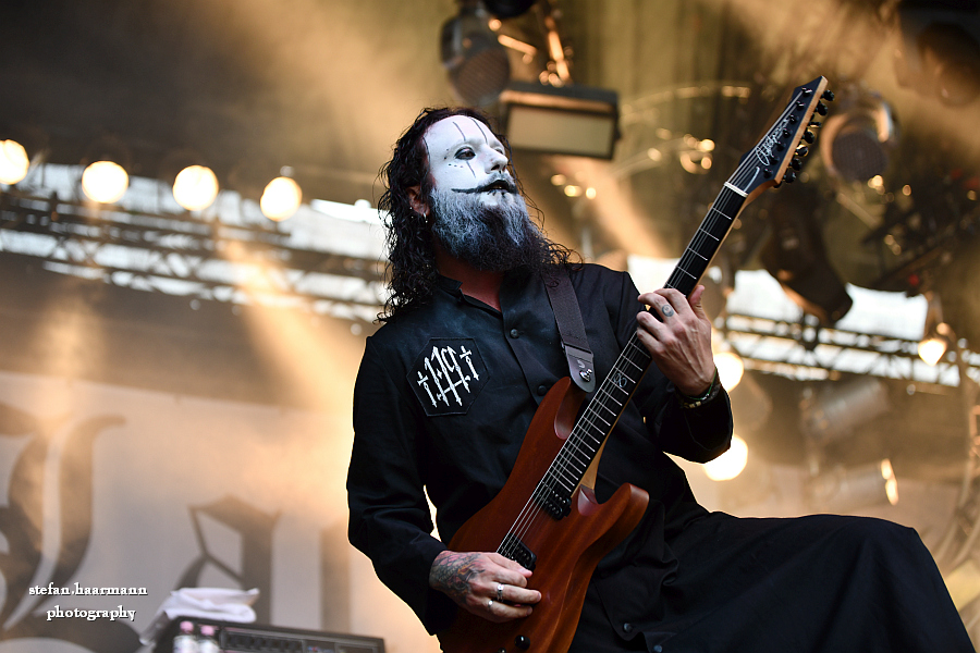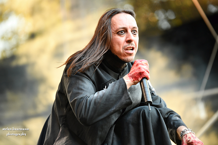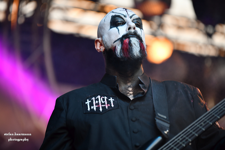 Zum Abschluss des Festivals geht es dann schminktechnisch noch einmal in die Vollen, denn mit LACUNA COIL betreten die Mailänder um Frontgirl Cristina Scabbia die Bühne. Markenzeichen der Combo: Reichlich weiße Schminke in den Gesichtern von Basser Marco Coti Zelati, Gitarrist Diego Cavallotti und Schlagzeuger Ryan Blake Folden sowie Theaterblut an den Händen bei Co-Leadsänger Andrea Ferro und im Gesicht sowie an den Händen von Frontfrau Cristina Scabbia, das Ganze ist halt als Gesamtkunstwerk zu betrachten.