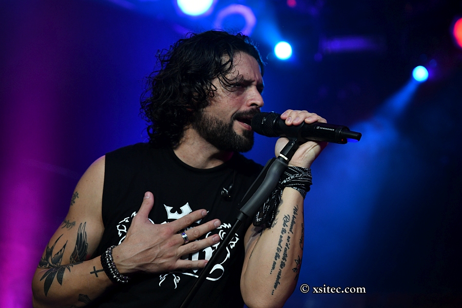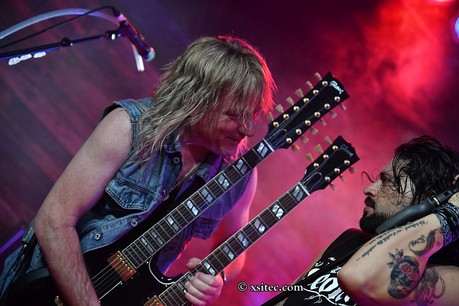 Leo Leoni blüht an seinem angestammten Platz am rechten Bühnenrand regelrecht auf und entlockt seiner Gitarre immer wieder Soli der Extraklasse. Die Band sprüht nur so vor Spielfreude und RONNIE ROMERO stellt eindrucksvoll unter Beweis, einer der besten Sänger im Rock/Metalbereich zu sein. „Firedance“, schon immer einer der beliebtesten GOTTHARD-Titel, liefert die Basis für ein Gitarrenduell zwische Leo und Jgor, das so ausladend angelegt ist, dass Ronnie Romero kurzerhand die Bühne verlässt, um sich auf der Empore unter das Publikum zu mischen und von oben das Geschehen zu kommentieren. Da die beiden Kontrahenten an den Stromgitarren aber noch lange nicht genug haben, muss Romero noch etwas auf seinen erneuten Einsatz warten.
