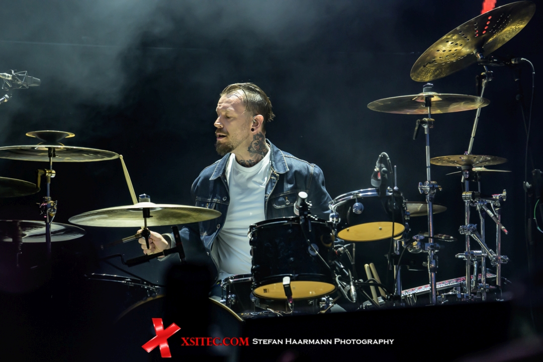 Los geht’s mit „The Box“ als Intro vom Band, dem Opener des aktuellen Albums „CMF2“. Die Zeile „take a breath – enjoy the show“ ist Programm und wird sogleich mit Leben gefüllt, da mit den letzten Tönen des Songs die Musiker aus der Garderobe kommen und die Bühne in Beschlag nehmen. Zuletzt betritt er die Bühne, der Maskenmann aus Des Moines, Iowa, allerdings ohne die verhüllende Requisite, hinter der sich er bei SLIPKNOT in bekannter Manier verstecken kann. „Made Of Scars“ als Abrechnung mit der eigenen Vergangenheit rüttelt den RuhrCongress vom ersten Takt an durch und zeigt alle Stärken des Songwriters, der zwischen Härte und Gefühl alle Register zu ziehen im Stande ist.