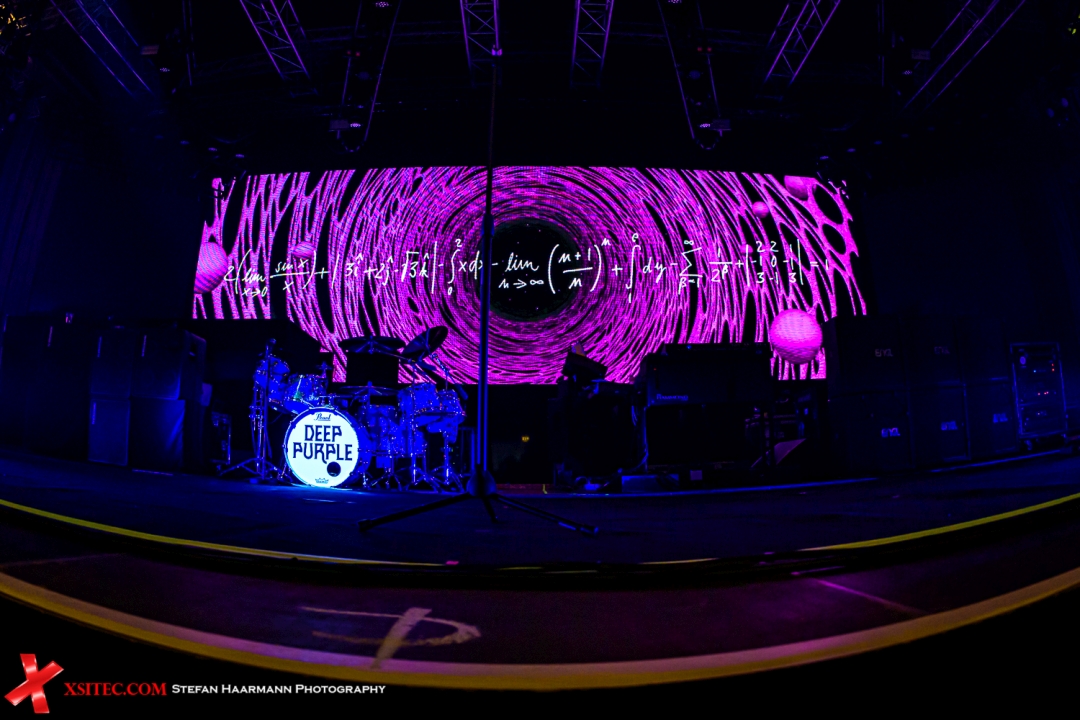 Somit ist alles perfekt angerichtet und nach kurzem Umbau stehen sie dann auf der Bühne: neben Ian Gillan (Gesang) greifen Ian Paice (Schlagzeug), Roger Glover (Bass), Don Airey (Keyboards), sowie der bereits erwähnte Neuzugang Simon McBride (Gitarre) zu den Instrumenten und legen nach „Mars, The Bringer Of War“ vom Band mit einer krachenden Version ihres Klassikers „Highway Star“ standesgemäß los. Auf der LED-Wall im Hintergrund gibt es zum Song passende Einspieler, die sich mit den von der Kamera am Bühnenrand eingefangenen Sequenzen der Hauptakteure abwechseln. Gleich darauf folgt mit „A Bit On The Side“ der erste Titel des seit Juli in den Läden stehenden, 23. Studioalbums der Briten, der bereits deutlich die Handschrift McBrides trägt, dessen Bandkollege Ian Paice ihn bereits vor seinem Einstieg bei DEEP PURPLE als einen der weltbesten Gitarristen bezeichnet hatte.