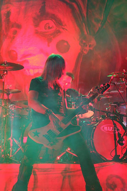 Los geht es - etwas überraschend - nicht mit dem Opener des aktuellen Albums, sondern dem an zweiter Stelle platzierten "Nobody's Hero". Eine gute Wahl, denn die knackige, flotte Nummer macht mehr Druck, als es das schwerfällige "Robin Hood", das erst später im Set auftaucht, tun würde. Weiter geht es mit dem noch etwas schnelleren "The Arcane Guild", bevor mit "Tears Of A Mandrake" der erste Klassiker ausgepackt wird. Starker Einstieg, der für den weiteren Verlauf einiges erwarten lässt. EDGUY haben sich vorgenommen, das neue Album ausgiebig live zu präsentieren und so folgen zunächst "Pandora's Box", bei dem Gitarrist Jens auch live die Lap-Steel-Gitarre spielt und das stimmungsvolle "Rock Of Cashel", das live natürlich bestens funktioniert. Danach wird die unvermeidliche "Lavatory Love Machine" angeschmissen - ist ja schon ein lustiger Song, den man auch schön mitsingen kann (was Tobi mit dem Publikum übertrieben lang übt), aber wenn man die Nummer von Anfang an nur ganz nett fand, ist man ihrer irgendwann auch überdrüssig. Ähnliches gilt für die anderen beiden Songs ähnlicher Machart, nämlich "Superheroes" und "King Of Fools", die auch beide noch gespielt werden. Da könnte man ruhig mal eine spannendere, selten präsentierte Nummer statt einem dieser Songs spielen. Hier böte sich heute "Mysteria" an, zumal KREATORs Mille sich den EDGUY-Auftritt auch anschaut.