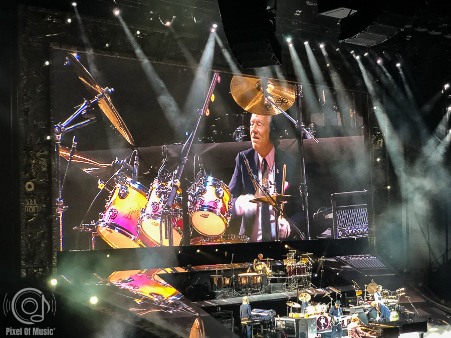 Aber auch seine Band hat einige Hochkaräter zu bieten. Der Schlagzeuger Nigel Olsson war mit Unterbrechung seit 1971 ständiges Mitglied der Elton John Band. Ebenso „Mad Ray Cooper“, der Percussionist, der bereits mit anderen Größen wie Pink Floyd, The Rolling Stones, Phil Collins, Sting und The Who zusammengearbeitet hat. Ray zog, wie gewohnt, im Hintergrund quasi seine eigene kleine Show ab. Den Zuschauern hat’s gefallen.