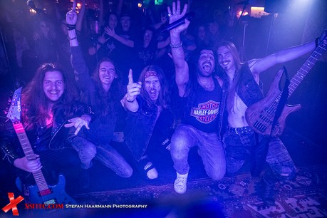 Neben Sänger Emmo Acar, der mit seinem als Leuchtschwert gestalteten Mikrofonständer die Blicke der Fans auf sich zieht, brilliert in Sachen Posing vor allem Bassmann Roman Stalder, dessen Fünfsaiter des Öfteren in martialischer Pose als Axt geschwungen wird, das Ganze erfolgt in der vollen Gewissheit, genau hier und jetzt das zu tun, wofür die Strapazen der letzten Wochen auf sich genommen wurden. Weiter geht es mit dem JOURNEY Klassiker „Separate Ways“, den Shouter Emmo bereits im Interview als einen der Titel hervorgehoben hatte, der für ihn und die Band eine exponierte Stellung einnimmt, was man an der Interpretation der Band unschwer erkennen kann.