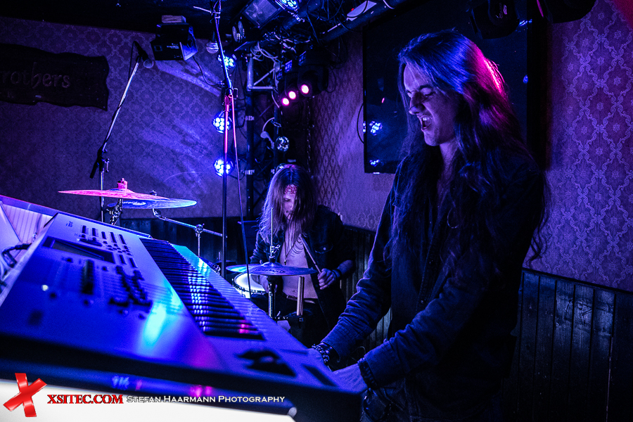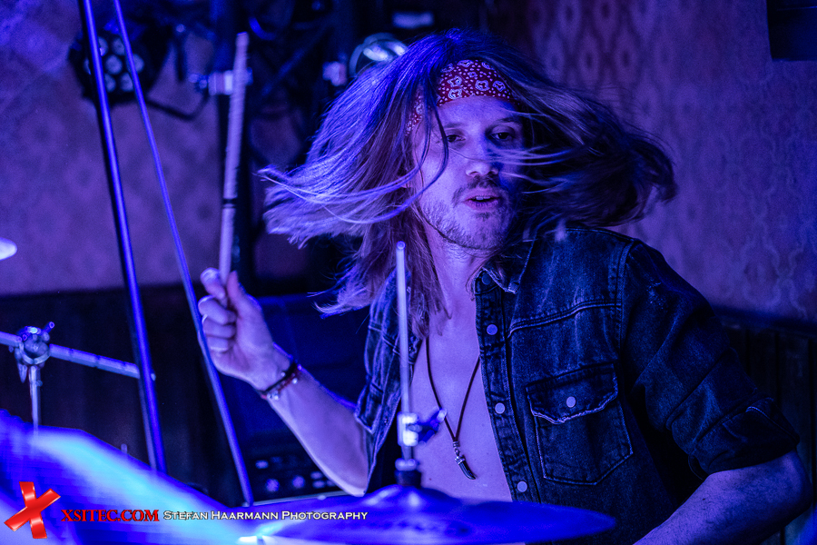 „Into The Night“ besticht durch tanzbare Rhythmen, die Keyboarder Felix Commerell an seiner beleuchteten Tastenburg im 80er Sound untermalt, bevor dann mit „Turn It Up“ der letzte Eintrag der regulären Setlist gespielt wird. Die Band geht danach aufgrund des begrenzten Platzangebots nicht von der Bühne, sondern feuert mit „City Of Sinners“, „Looking For Action“ und „Out In The Fields“, dem grandiosen GARY MOORE Titel, nochmals aus allen Instrumenten in die tobende Menge, die danach auch noch den eigentlich nicht geplanten Abschluss mit KISS´ „Lick It Up“ feiert.