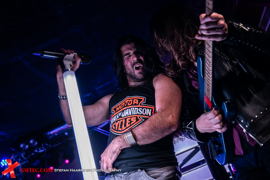 Neben Sänger Emmo Acar, der mit seinem als Leuchtschwert gestalteten Mikrofonständer die Blicke der Fans auf sich zieht, brilliert in Sachen Posing vor allem Bassmann Roman Stalder, dessen Fünfsaiter des Öfteren in martialischer Pose als Axt geschwungen wird, das Ganze erfolgt in der vollen Gewissheit, genau hier und jetzt das zu tun, wofür die Strapazen der letzten Wochen auf sich genommen wurden. Weiter geht es mit dem JOURNEY Klassiker „Separate Ways“, den Shouter Emmo bereits im Interview als einen der Titel hervorgehoben hatte, der für ihn und die Band eine exponierte Stellung einnimmt, was man an der Interpretation der Band unschwer erkennen kann.