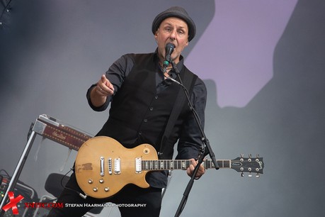 Glücklicherweise hat an diesem lauen Sommerabend, der wettertechnisch ein buntes Potpourri sich drohend auftürmender Wolken und güldener Sonnenstrahlen darbietet, keine der beiden Bands Probleme, eben diesen Kontakt zu den Fans herzustellen. Nach dem grandiosen Aufwärmprogramm der Urgesteine der Deutsch-Rock Szene SELIG, treten nun mit FURY IN THE SLAUGHTERHOUSE die Hannoveraner in den Ring, die nach eigener Aussage „schon immer“ dagewesen sind. „Selbst der Urknall war schon unser Ding“ verkündet ein blendend aufgelegter Thorsten Wingenfelder und auch das Pfeifen im Intro zu „Winds Of Change“ der SCORPIONS geht der Legende nach auf die FURYs zurück: das schelmische „wir hatten das zuerst“ sorgt bei den Fans im weiten Rund des SparkassenParks für Zustimmung, die durch kräftigen Beifall bekundet wird.
