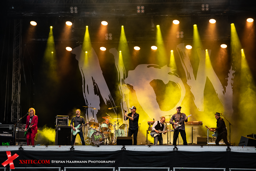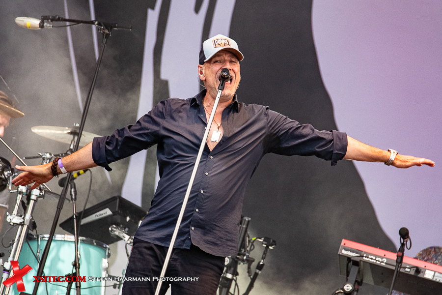 Glücklicherweise hat an diesem lauen Sommerabend, der wettertechnisch ein buntes Potpourri sich drohend auftürmender Wolken und güldener Sonnenstrahlen darbietet, keine der beiden Bands Probleme, eben diesen Kontakt zu den Fans herzustellen. Nach dem grandiosen Aufwärmprogramm der Urgesteine der Deutsch-Rock Szene SELIG, treten nun mit FURY IN THE SLAUGHTERHOUSE die Hannoveraner in den Ring, die nach eigener Aussage „schon immer“ dagewesen sind. „Selbst der Urknall war schon unser Ding“ verkündet ein blendend aufgelegter Thorsten Wingenfelder und auch das Pfeifen im Intro zu „Winds Of Change“ der SCORPIONS geht der Legende nach auf die FURYs zurück: das schelmische „wir hatten das zuerst“ sorgt bei den Fans im weiten Rund des SparkassenParks für Zustimmung, die durch kräftigen Beifall bekundet wird.
