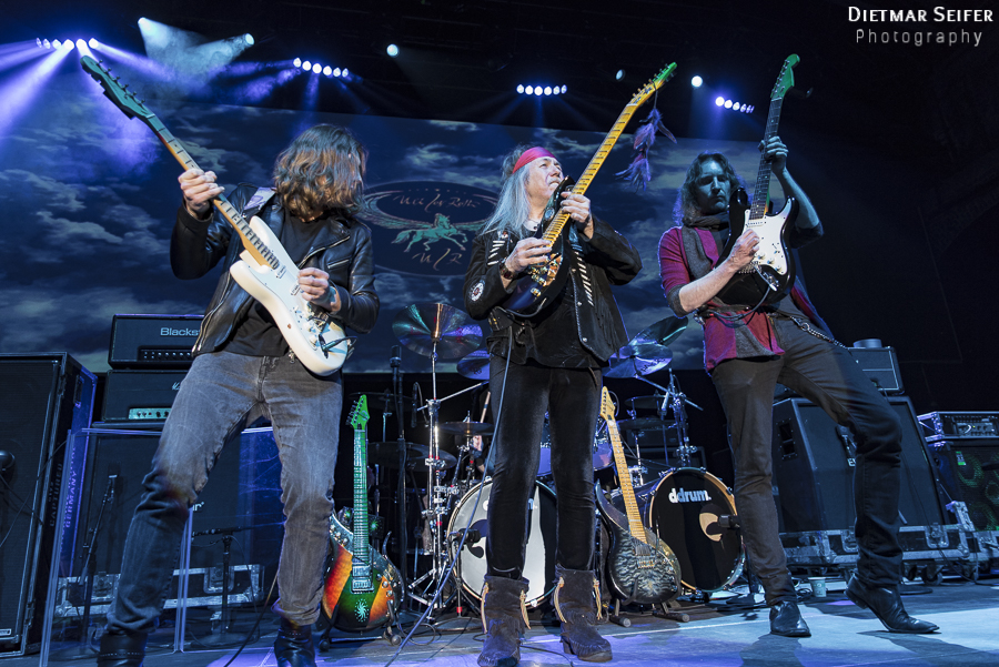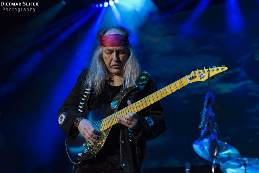 Pünktlich um 19:30 Uhr durfte Uli Jon Roth, der ehemalige Gitarrist der Scorpions (`73 – `78), das Konzert eröffnen. In seinem Line-Up konnte ich Musiker erkennen, die ich bereits vom German Kultrockfestival 2017 kannte. Quasi die Hannover-Connection. Die Musiker der Band Crystal Breed, die schon länger mit Rockgrößen wie Uli Jon Roth und Peter Pankas Jane zusammenarbeiten und touren, sind bühnenerfahren und bereits selbst bekannte Künstler. So durfte Niklas Turmann nicht nur neben Uli Jon Roth in die Saiten greifen, sondern auch sein Gesangstalent mit einigen älteren Scorpions Songs präsentieren. Mit „We’ll Burn In The Sky“ ehrte der 63-jährige Roth nach einer bewegenden Ansprache seinen Anfang Februar verstorbenen Bruder Zeno Roth. Im ersten Teil des Konzertabends wurden von Roth 6 Songs gespielt, die seine Ausdrucksstärke und musikalische Erfahrung zum Ausdruck brachten.