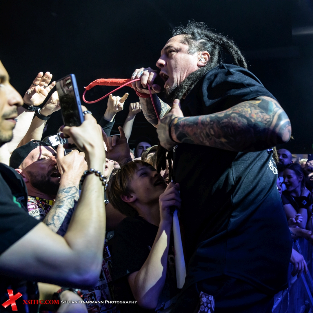 Sekunde ebenfalls Vollgas und verzücken die zahlreich anwesenden p.o.d. Fans mit einer energiegeladenen Show voll spritziger Einfälle. Dazu gibt es die Hits der Karriere und Ausflüge von Frontmann Paul „Sonny“ Sandoval in den Bühnengraben, um sich von den Fans hautnah feiern zu lassen. „Satellite“ und „Alive“, die Mega-Hits der Band, werden in tollen Versionen zelebriert, die die Halle erbeben lassen. Ein grandioses Spektakel, das gerne noch länger hätte dauern dürfen.