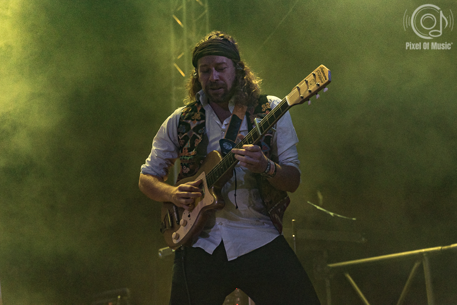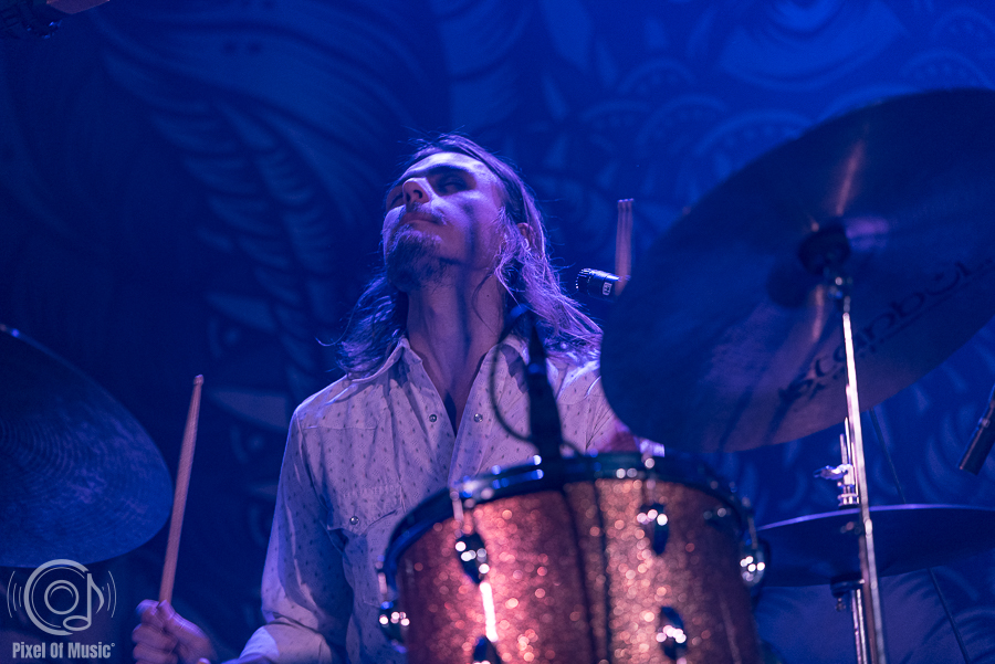 Die Jungs von der Ersatzbank, DeWolff, die kurzfristig für My Sleeping Karma eingesprungen waren, folgten im LineUp. Etwas knapp angereist, war man sich nicht sicher, ob ohne Soundcheck und ausreichende Vorbereitung alles rund laufen würde. Und wie der Teufel es wollte, gab es zu Anfang tatsächlich technische Probleme, die die Crew aber relativ schnell lösen konnte. Die niederländische Band aus Geleen (Provinz Limburg) besteht aus den Brüdern Luka (Schlagzeug) und Pablo van de Poel (Gitarre) sowie Robin Piso (Keyboard). Die Webseite des WDR Rockpalast attestiert DeWolff, „die Welt mit wildem, psychedelischem Sixties-Blues-Rock zu erschüttern“. Die drei Niederländer nähmen den Hörer mit „in eine Zeit, in der Led Zeppelin, Cream, Pink Floyd und Deep Purple die Welt beherrschten“.