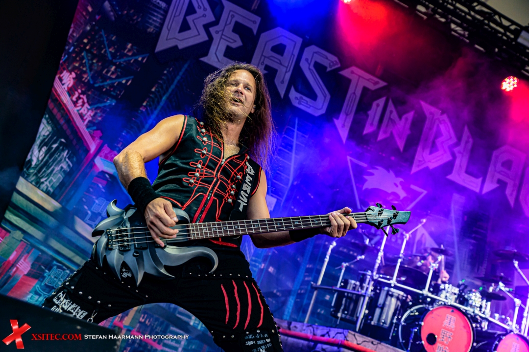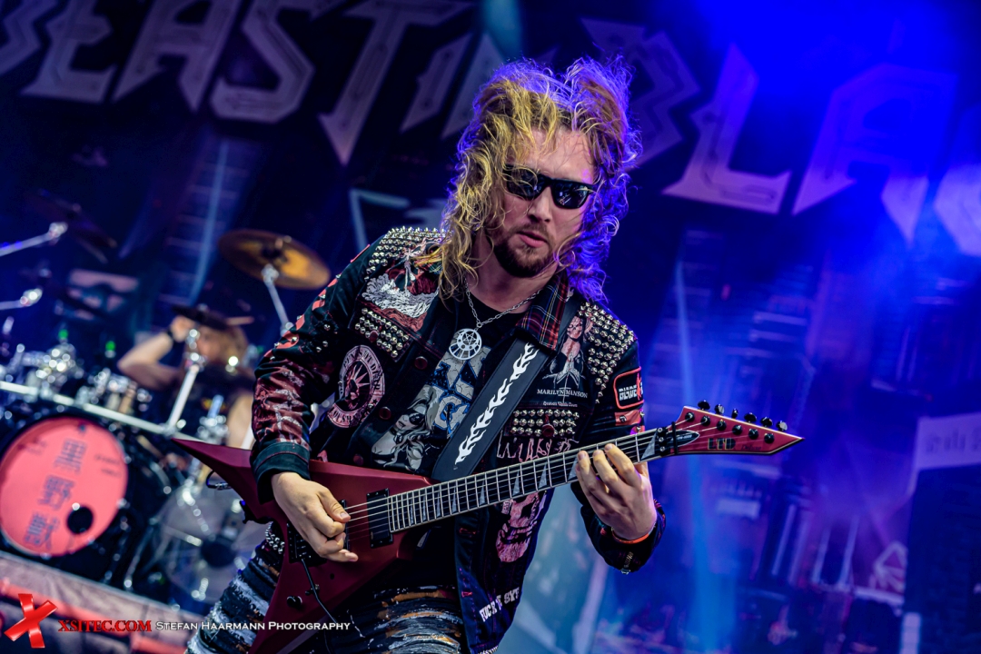 BEAST IN BLACK sind ihrerseits ebenfalls für Shows bekannt, die nicht dem Durchschnitt entsprechen. Mastermind Anton Kabanen und Kasperi Heikkinen sind an den Gitarren immer für exaltierte Moves bekannt, Bassmann Máté Molnár,
