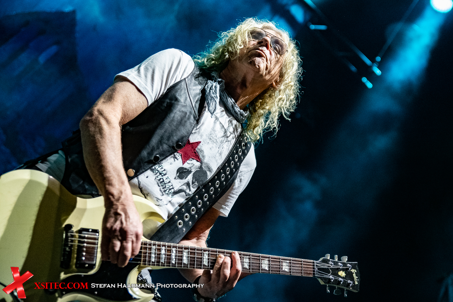 Und auch dieser Abend ist nicht ganz frei von Meldungen zum Thema COVID-19. Urgestein GLENN Hughes, seines Zeichens Ex-DEEP PURPLE Bassmann und nun Frontmann der THE DEAD DAISIES, kann aufgrund einer Erkrankung an besagtem Virus nicht auf die Bühne der Rudolf Weber-Arena treten. In die Bresche springen muss Dino Jelusick, der vor ein paar Wochen an gleicher Stelle bereits das David Coverdale-Double gab und den Altmeister bei den schwierigen Highnotes brillant unterstützte. Die Gedächtnisstütze in Form handgeschriebener DAISIES Texte zieren den Boden der Arena rund um das Mikrofon des Kroaten – wer will es ihm angesichts des kurzfristigen Engagements verdenken? Da Hughes zudem normalerweise auch den Bass bedient, musste kurzfristig noch ein Bassmann aus dem Hut gezaubert werden, der seine Sache allerdings auch tadellos macht. Chapeau.