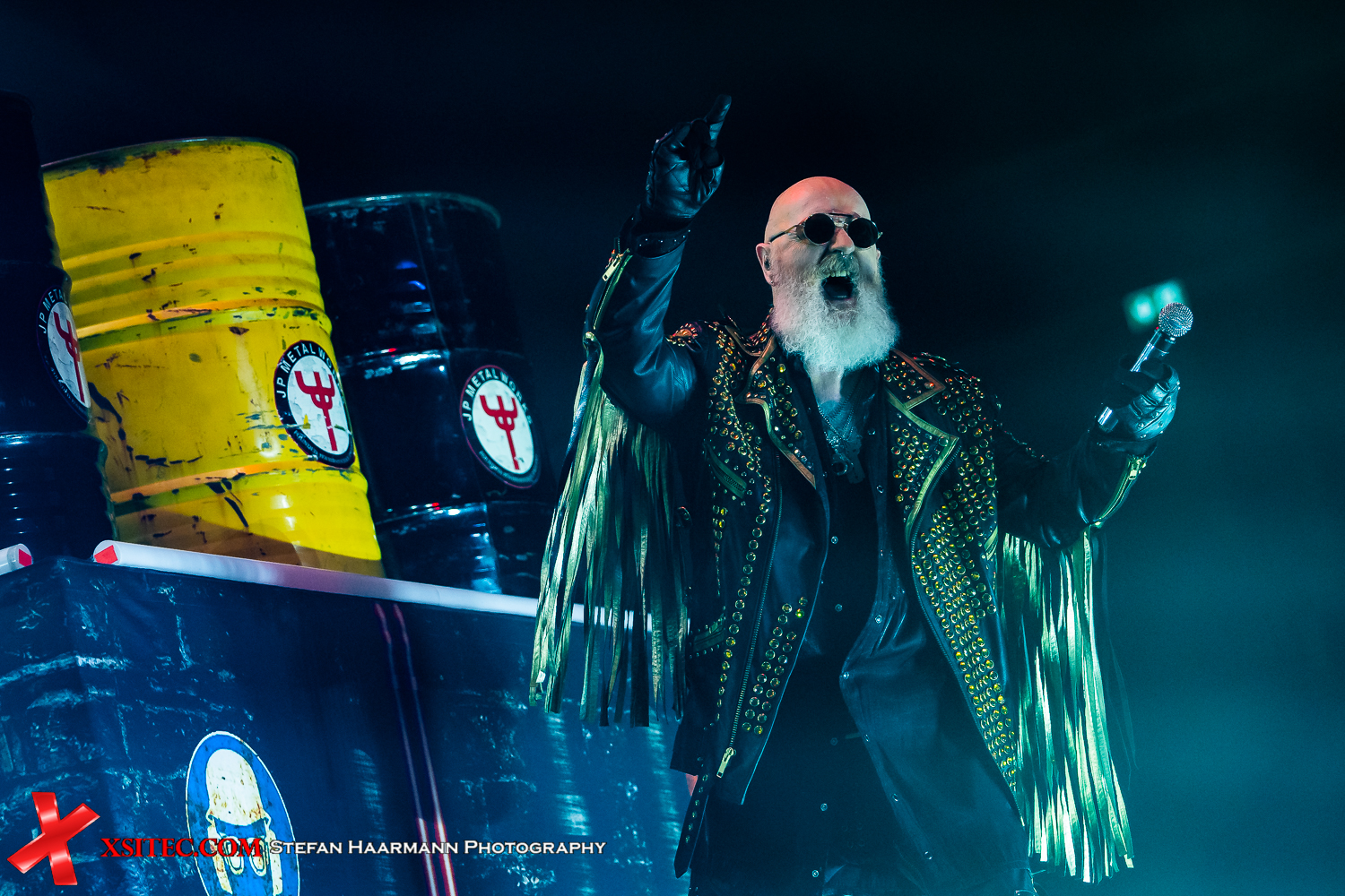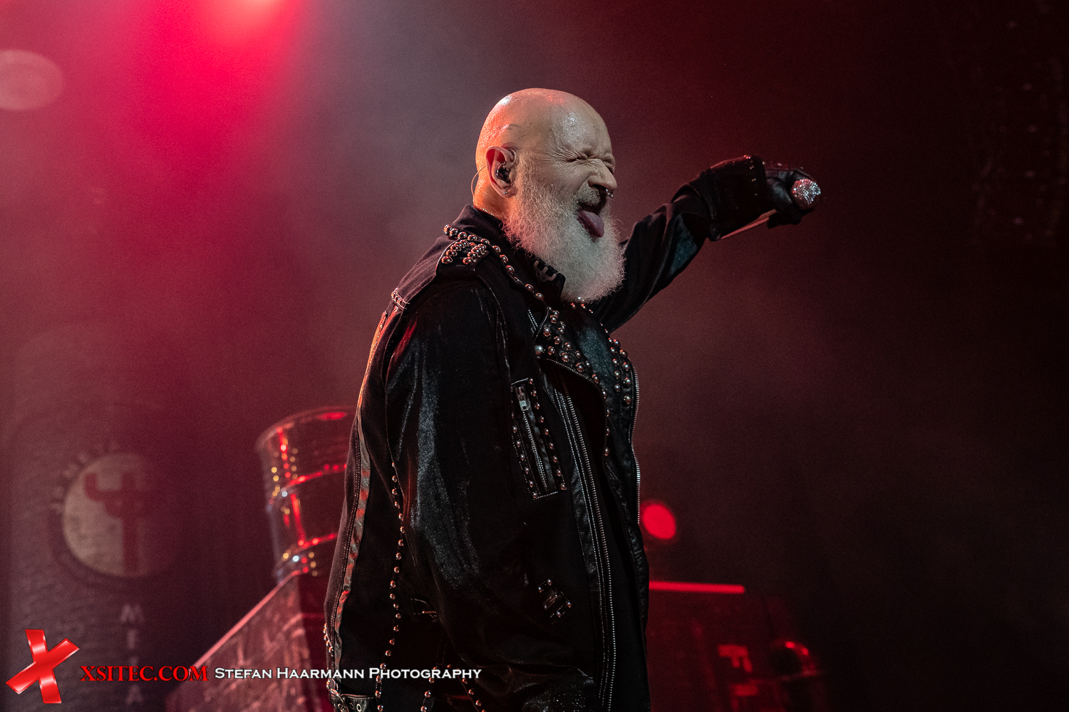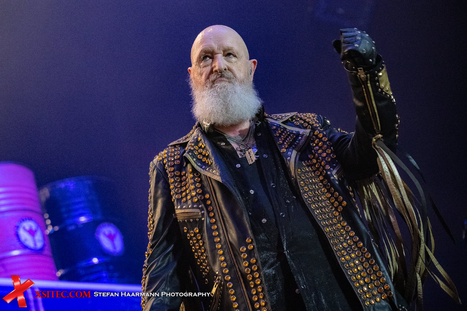 Nach kurzem Umbau geht es dann zurück zu den Wurzeln des Heavy Metal. JUDAS PRIEST, die auch nach OBERHAUSEN ihr mächtiges Bandlogo mitgebracht haben, starten unter dem rot leuchtenden Emblem ihre Show, die 53 Jahre Bandgeschichte Revue passieren lässt, und man kann sich des Eindrucks nicht erwehren, dass die Zeit den Heroen und den Songs nichts anhaben kann. Rob Halford, der eine ganze Generation Metal-Shouter beeinflusste, blickt sichtlich stolz auf sein Lebenswerk zurück, das er immer wieder mit Screams und seiner tänzelnden Gangart untermalt. Halford, der in wenigen Tagen seinen 71 Geburtstag feiert, ist von der Reaktion der Fans sichtlich angetan, die die Band lautstark feiern.