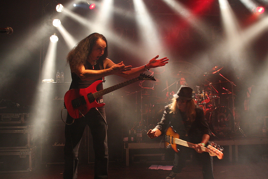 Auch der Name der zweiten Vorband ist nicht gerade geläufig, aber zumindest ein paar Leute können etwas mit KINGCROW anfangen, denn die haben schon einmal im Turock gespielt und zwar als Vorband von FATES WARNING. Die italienische Band nimmt die Show an diesem Abend für eine DVD-Veröffentlichung auf, was sich nicht als schlechte Wahl entpuppt, denn das Publikum spendet der Truppe reichlich Applaus.