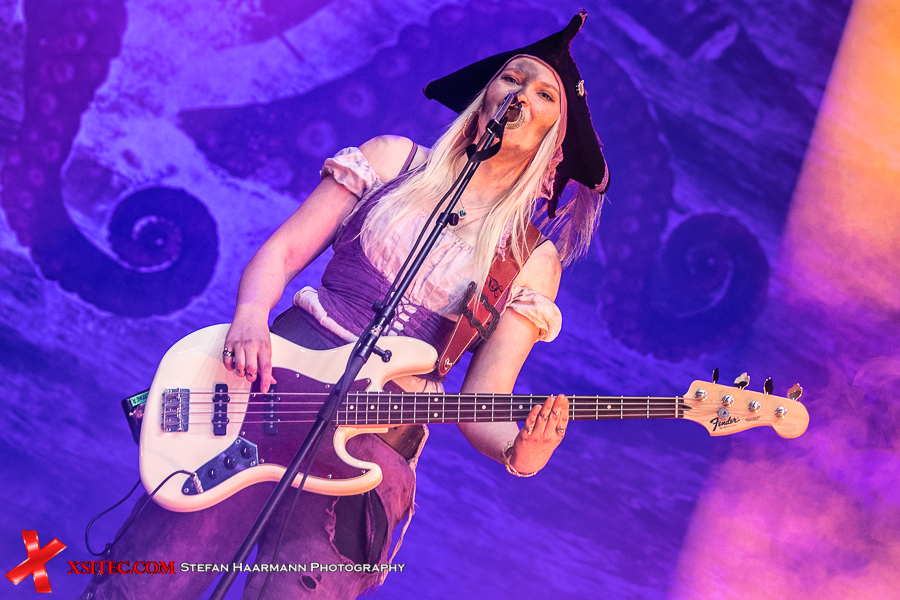 Überhaupt dominieren im Publikum die Piratenkostüme, die sich aufgrund des prächtigen Wetters und der glücklicherweise etwas gelockerten Ausstiegsbedingungen auch auf oder neben ihren Auto aufhalten dürfen, solange sich keine größeren Gruppen bilden. Chefpirat Mr. Hurley geht als erster an Deck, gefolgt von seiner Crew Pegleg Peggy (Bass), Buckteeth Bannock (Akkordeon), sowie dem einäugigen Morgan (Schlagzeug).