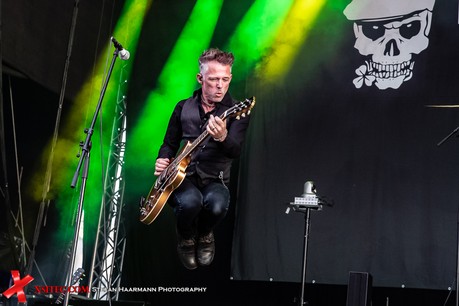 Das Wetter spielt an diesem Abend erfreulicherweise wieder bestens mit, die untergehende Sonne taucht sie Szenerie in goldenes Licht. Pünktlich um 20:30 Uhr geht es los und die Münsteraner entern die Bühne. Die Band ist seit ihrer Gründung im Jahr 2006 mit ihrer tief in der POGUES- und DROPKICK MURPHEYS-Tradition verwurzelten Musik nicht nur bundesweit, sondern auch international erfolgreich. MR. IRISH BASTARD himself begrüßt die zahlreichen Fans in der Auto Arena sichtlich bewegt, schließlich ist es mittlerweile nicht mehr selbstverständlich, als Künstler vor ein Livepublikum treten zu können.