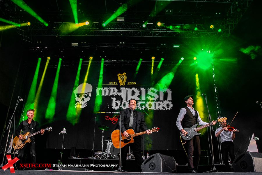 Das Wetter spielt an diesem Abend erfreulicherweise wieder bestens mit, die untergehende Sonne taucht sie Szenerie in goldenes Licht. Pünktlich um 20:30 Uhr geht es los und die Münsteraner entern die Bühne. Die Band ist seit ihrer Gründung im Jahr 2006 mit ihrer tief in der POGUES- und DROPKICK MURPHEYS-Tradition verwurzelten Musik nicht nur bundesweit, sondern auch international erfolgreich. MR. IRISH BASTARD himself begrüßt die zahlreichen Fans in der Auto Arena sichtlich bewegt, schließlich ist es mittlerweile nicht mehr selbstverständlich, als Künstler vor ein Livepublikum treten zu können.