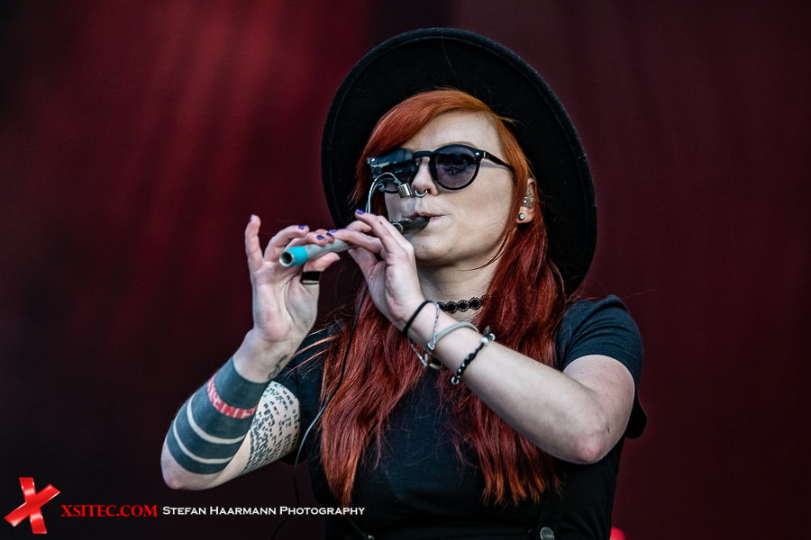 Direkt zu Anfang werden seitens der Akteure bereits alle Register gezogen. Sprünge, wilde Mimik und ausgelassene Spielfreude unterhalten die Fans in der Arena, das Lebensmotto der Combo, „drinking and wenching“, prangt unmissverständlich auf dem offiziellen Banner, das hinter der Bühne aufgespannt ist und ist Programm und Treibstoff der Songs.