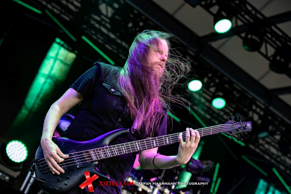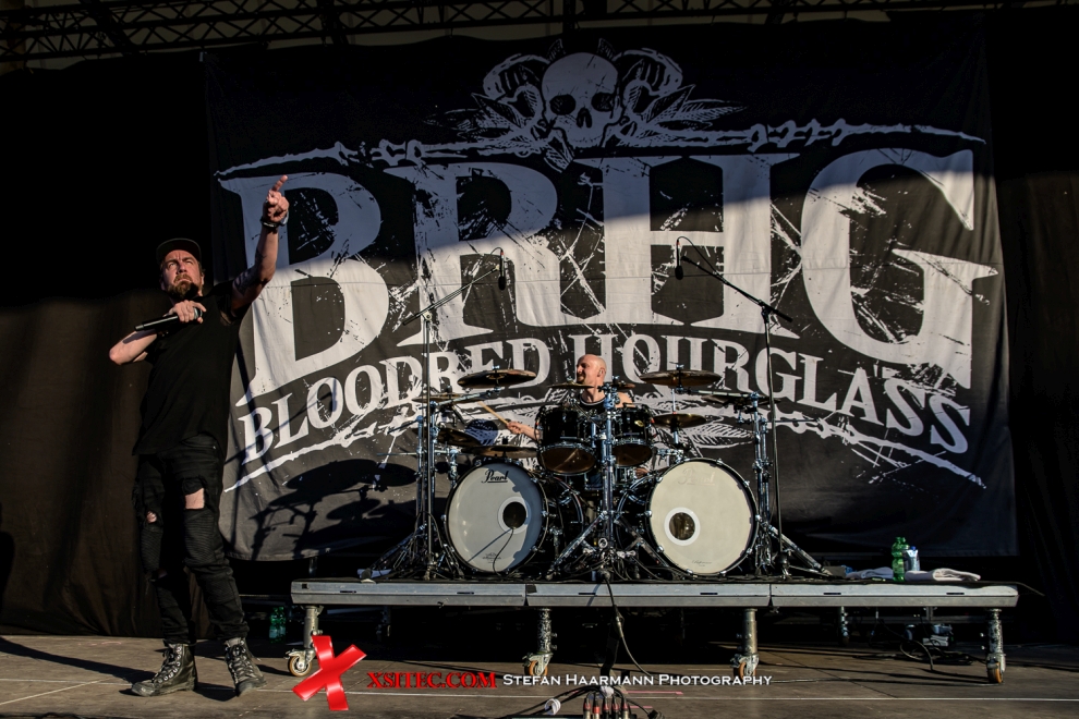 Den Abend eröffnen BLOODRED HOURGLASS, die zwar musikalisch weit entfernt sind vom Symphonic-Metal ihrer finnischen Landsleute um Floor Jansen, der von ihnen gespielte Groove-Metal kommt im weiten Rund des Amphitheaters allerdings ausgesprochen gut an und sorgt bei den aktiven Headbangern vor der Bühne bei hochsommerlichen Temperaturen für schweißnasse Leiber. Gute 45 Minuten reichen der Band locker, hier neue Fans zu gewinnen. Ein toller Auftakt. Die anschließende Umbaupause wird von allen Anwesenden zur Erfrischung genutzt, die immer noch starke Sonneneinstrahlung und die Restwärme des Betons fordern ihren Tribut.