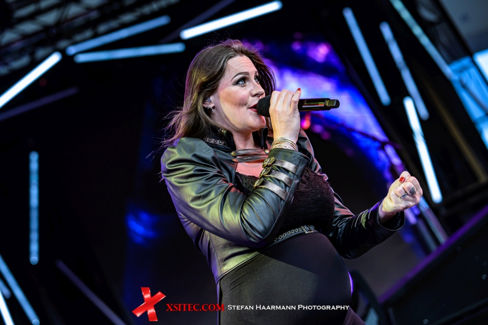 Weiter geht es mit „Storytime“ vom 2011er Longplayer „Imaginaerum“, gefolgt von „Tribal“, bei dem erstmals alle Register der Pyrotechnik gezogen werden. Die Songs werden zusätzlich mit optischen Einspielern auf den LED-Walls unterstützt, die bei nun untergehender Sonne verstärkt zur Geltung kommen. Floor Jansen zeigt sich auch als werdende Mutter in Top-Form und dominiert eindeutig die Szenerie. „Élan“, „Sleeping Sun“ und „Dark Chest Of Wonders“ sorgen in der Folgezeit für prächtige Stimmung im weiten Rund des Amphitheaters, das mit mehr als 6000 Fans komplett gefüllt ist. „How´s The Heart“ vom aktuellen Album liefert den Beweis, dass die neuen Songs sich perfekt in die Hits der Band einreihen, ein Grund dafür, dass NIGHTWISH über die Jahrzehnte hinweg trotz wechselnder Sängerinnen das Maß aller Dinge im Bereich des Symphonic Metal geblieben sind.