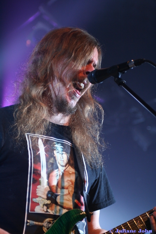 Material von „Watershed“ und „Ghost Reveries“, sondern wildern ebenfalls querbeet durch die Alben „Still Life“, „Blackwater Park“ und „My Arms Your Hearse“. In der dicht gepackten Markthalle steigen die Temperaturen, während in den vorderen Reihen die Stagediver über die Köpfe der Zuschauer segeln. Åkerfeldt mimt wieder einmal sympathisch den skurrilen Clown, lässt sich nach einer Coverdale-Imitation als Mr. C ansprechen und punktet mit wahrhaftigen Sprüchen wie „if you don’t like this song, you are a retard“. Der Kontrast zwischen OPETHs düsterem Prog-Death und Åkerfeldts Comedy-Einlagen funktioniert mal wieder bestens und sorgt dafür, dass die Zeit wie im Fluge vergeht. Wer nicht dabei war, muss sich schämen, denn OPETH sind sicherlich nicht bloß rein musikalisch die Band der Stunde!