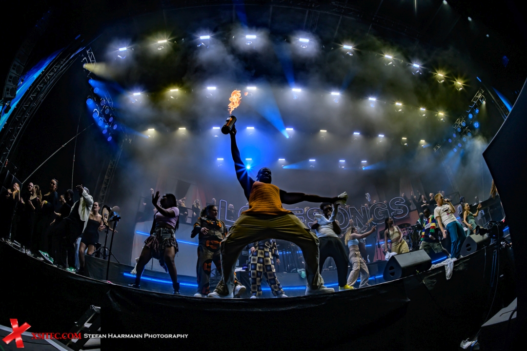 Im Anschluss geht die Post dann so richtig ab: „Augenbling“, im Original von SEEED ist ein toller Einstieg in die Dance-Passagen, bevor mit „Disney“ und „Toscana Fanboys“ zwei weitere Songs des aktuellen Albums „Lovesongs“ auf dem Programm stehen, die die Stimmung im weiten Rund weiter hoch halten und sich perfekt in die Setlist einfügen.