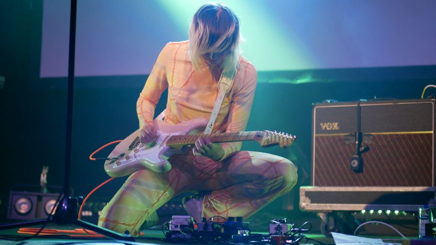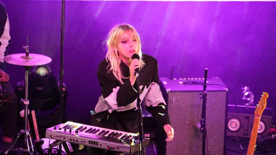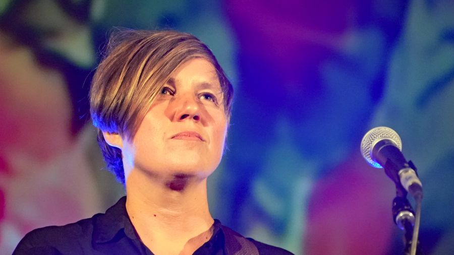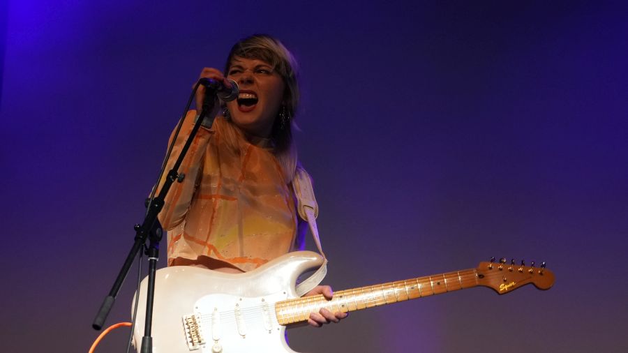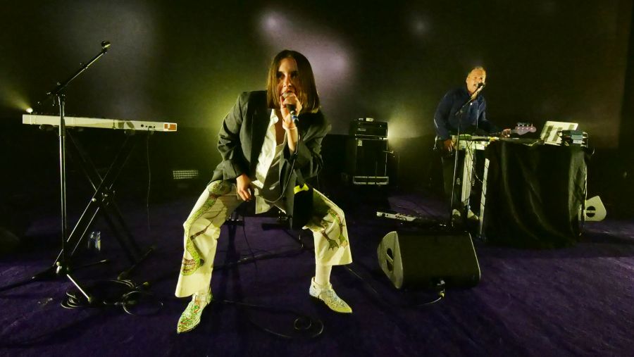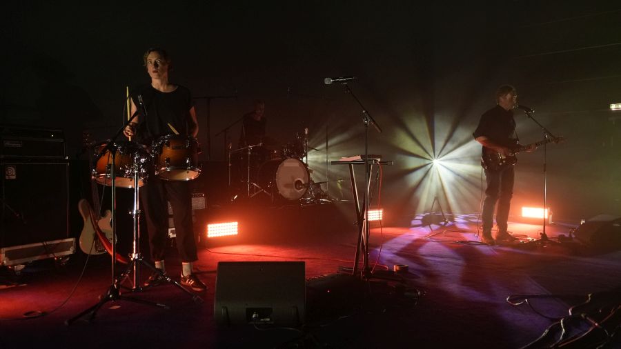 „Ich bin richtig nervös heute, weil ich es noch gar nicht glauben kann, dass es jetzt endlich wieder mit richtigen Live-Konzerten losgeht“, freute sich MASHA QRELLA vor ihrem Auftritt in dem für diese Zwecke bestens geeigneten Kino-Saal 3. In Sachen Sound, Lichtdramaturgie, Zugänglichkeit und Bequemlichkeit war diese Spielstätte sicherlich das Highlight des Festivals. MASHA QRELLA präsentierte hier (und auch auf ihrer anschließenden Tour) endlich das Material ihres im Februar erschienen Albums „Woanders“ - auf dem sie Texte des Schriftstellers THOMAS BRASCH vertont hatte; und zwar auf Deutsch. Das war dann also nicht nur für das Publikum, sondern auch für MASHA und ihre Musiker (darunter auch Drummer ROBERT KRETSCHMAR, der am Tag zuvor bei ALBERTINE SARGES hinter dem Kit gesessen hatte) etwas Neues. Eine gewisse Anspannung war der Show dann auch durchaus anzumerken – allerdings hauptsächlich aufgrund kleiner technischer Probleme, die das QRELLA-Trio aber nicht aus der Bahn werfen konnten. Spannend war das Ganze schon alleine deswegen, weil die Musiker ständig zwischen organischen und elektronischen Instrumenten und Sounds wechselten und weil die Texte nicht nur auf Deutsch gesungen wurden, sondern auch deswegen, weil MASHA diese ungewohnt deutlich akzentuierte, besser als gewohnt verstanden werden konnten. Da machte es auch nichts, wenn MASHA, wie z.B. bei dem mitreißenden Rocksongs „Wind“, mal einen halben Ton neben der Gitarre spielte. Dafür funktionierte dann „Geister“ wie geplant als infektiöser Club-Knaller besonders gut. (Nicht, dass das Tanzen erlaubt gewesen wäre – aber trotzdem).