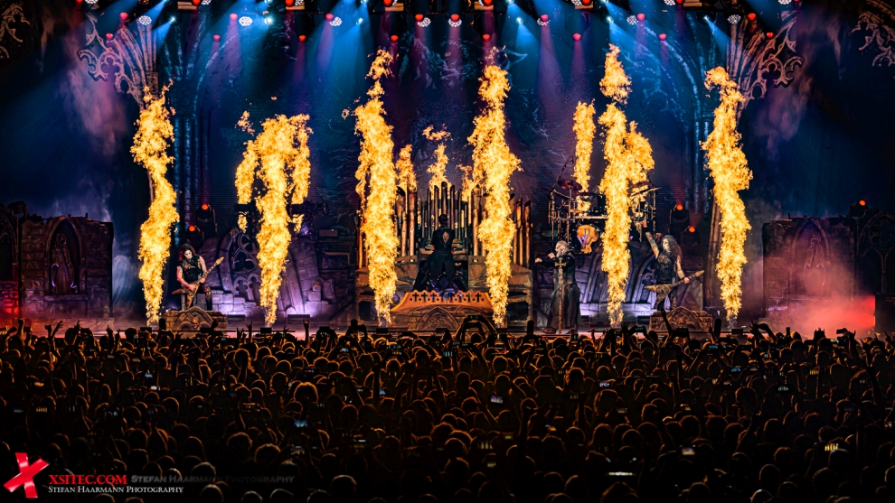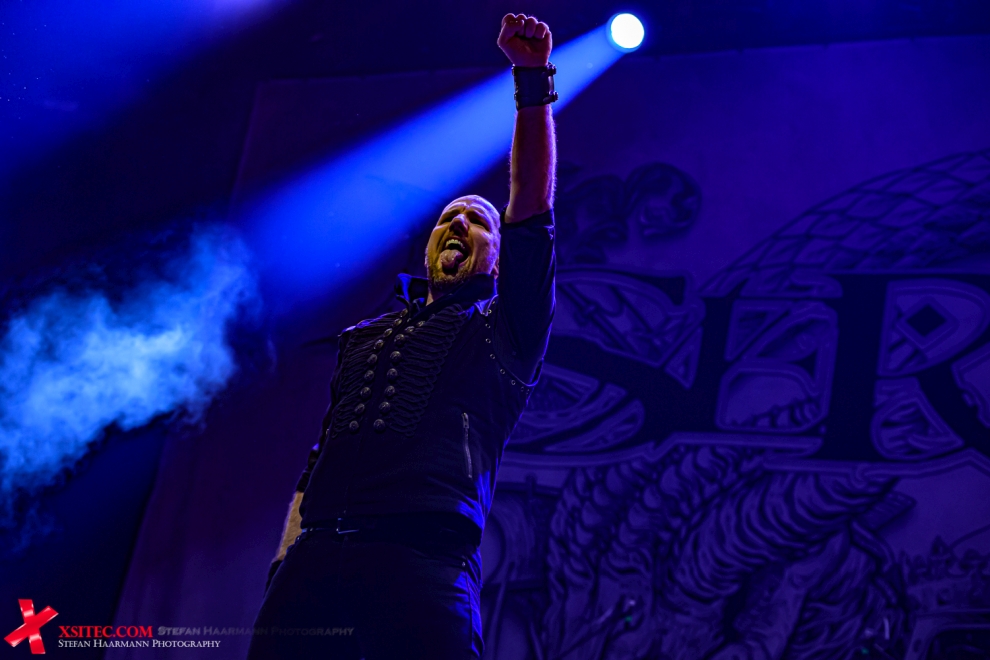 Die Wölfe starten anschließend mit „Faster Than The Flame“ in die Heavy-Metal-Messe, die standesgemäß mit reichlich Feuer und sakralem Habitus begangen wird. Nach „Incence And Iron“ kredenzen Attila Dorn und Co. mit „Wolves Of War“ den ersten neuen Titel des Abends, der frenetisch gefeiert wird.