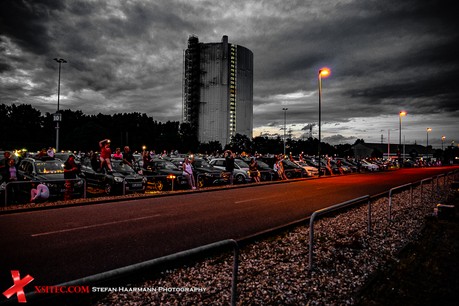Im Infield angekommen lässt sich sogar ein kleines bisschen Festivalatmosphäre spüren. Neben hunderten Autoradios, die selbstredend nichts anderes als REVOLVERHELD spielen, finden sich reihenweise bunt geschmückte Vehikel, die teils mit Lichterketten, Luftballons, Teelichtern und Pappschildern geschmückt sind. Nach ein wenig Regen gegen Mittag ist es mittlerweile wieder trocken, es weht ein laues Lüftchen, was bestes Festivalwetter bedeutet. Die Fans in der ersten Reihe stehen bereits seit 16:00 Uhr auf der Pole-Position, die weiter hinten platzierten Fahrzeuge werden durch zusätzliche Video-Walls mit Livebildern versorgt, die von mehreren Kameraleuten geliefert werden, die Bühne würde auch auf einem mittleren Festival eine gute Figur machen, der UKW Sender, der für die Übertragung des Sounds in die Autoradios verantwortlich ist, verrichtet seine Arbeit ohne Fehl und Tadel – perfekt.