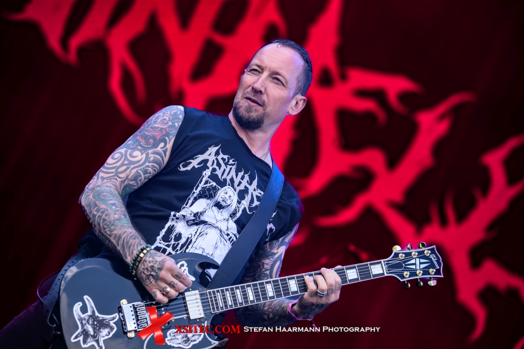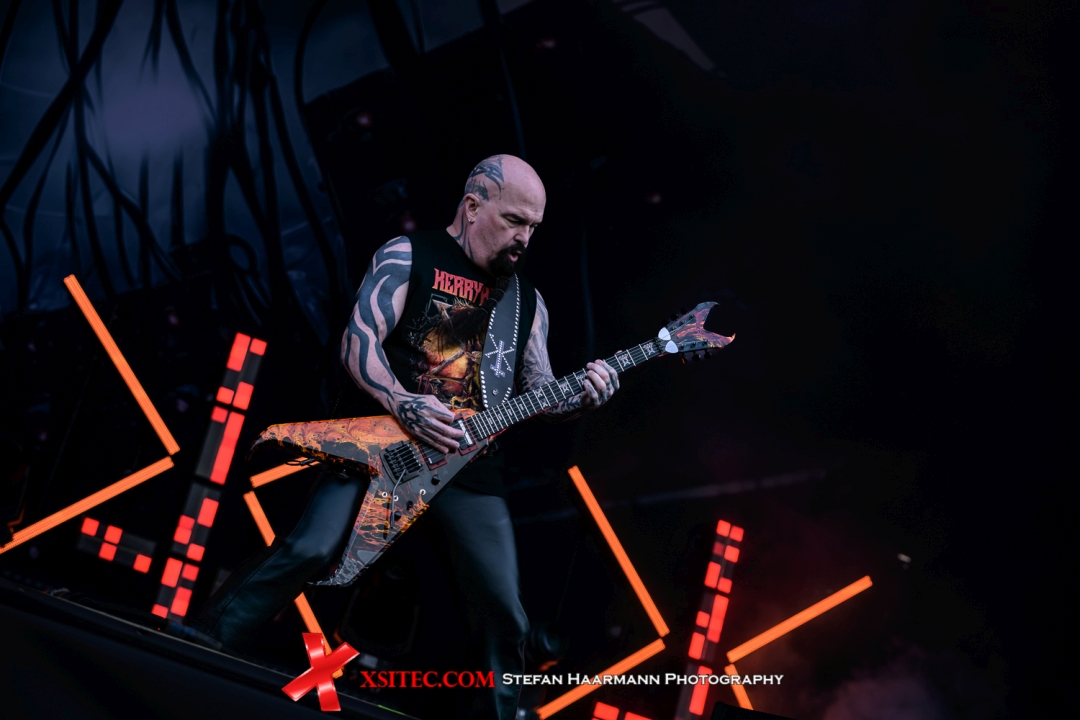 ENTER SHIKARI einen weiteren Act zu sehen, der immer für eine fulminante Show gut ist, eine Erwartung, die auch an diesem Tag mehr als erfüllt wird. Gleiches gilt im weiteren Verlauf für für die DROPKICK MURPHYS, deren Folk-Punk immer wieder Laune macht. Nach einem Song haste ich aus dem Graben, um rechtzeitig bei KERRY KING zu sein, seines Zeichens der Gitarrist der Thrash-Metaller von SLAYER, die sich seit 2019 im Ruhestand befinden. Dass King noch nicht zum alten Eisen gehört, zeigt sich im Laufe der Show, die eine riesige Fangemeinde vor die