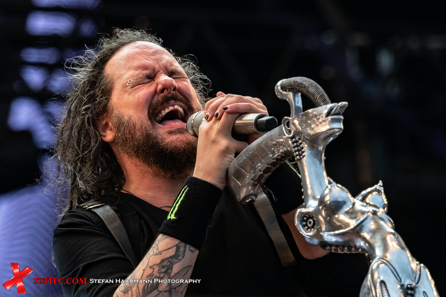 Als KORN auf die UTOPIA-Stage gehen, kann man sich sogar ohne Poncho vor die Bühne wagen. Das Publikum ist vom ersten Ton an komplett fasziniert und feiert die Band aus Bakersfield, die hier am Ring einen großartigen Auftritt abliefert. Nu-Metal, gemixt mit Dudelsack und klassischen Metal-Elementen charakterisieren den für KORN typischen Sound, der nach Jahren endlich wieder in Deutschland zu hören ist. Das Gedränge vor der Hauptbühne zeigt deutlich, dass dieser Act wohl von fast allen Festivalteilnehmern gefeiert wird.