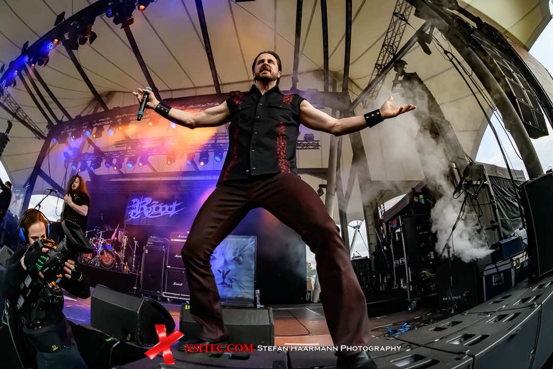 Kyle Thomas und seine Band EXHORDER sind danach bei wieder etwas besseren Wetterbedingungen an der Reihe. Thomas erzählt im Mittelteil von den Anfangstagen der Band, deren erste Show als Support für NOFX stattfand und deutlich in der Punk-Ecke Gefangene machte, obwohl man selbst Thrash-Metal spielte, die Musik aber authentisch und somit Punk-kompatibel war. Eine Show, die mitreißt und vor der Bühne diverse Circle-Pits initiiert. RIOT V im Anschluss stehen ihren Vorgängern in nichts nach. Die Band, die seit 2013 als Nachlassverwalter der New Yorker Heavy-Metal -Institution RIOT aktiv sind, lassen keinen Zweifel daran aufkommen, dass die Geschichte der Ursprungsformation keineswegs mit dem Tod von Guy Speranza († 2003; Gesang), Mark Reale († 2012; Gitarre) und Lou A. Kouvaris († 1978; Gitarre) geschrieben ist. Seit 2014 sind drei Alben unter dem Label RIOT V veröffentlicht worden, die locker das Niveau der Klassiker halten können. Und während das Wetter erneut Kapriolen schlägt, beweisen die Jungs um Frontmann Todd Michael Hall, dass RIOT V im Jahr 2024 immer noch eine echte Macht sind.