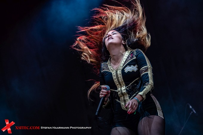 Danach gibt es mit THUNDERMOTHER passend zum immer noch drohenden Wetter den Soundtrack des frühen Abends. Die Donnermütter zeigen sich enorm spielfreudig und werden lautstark gefeiert. Das Posing der drei Grazien in der ersten Reihe wirkt frisch und ungezwungen, die Musik ist auf den Punkt und schreit eigentlich nach einem späteren Slot. Sicher in naher Zukunft.