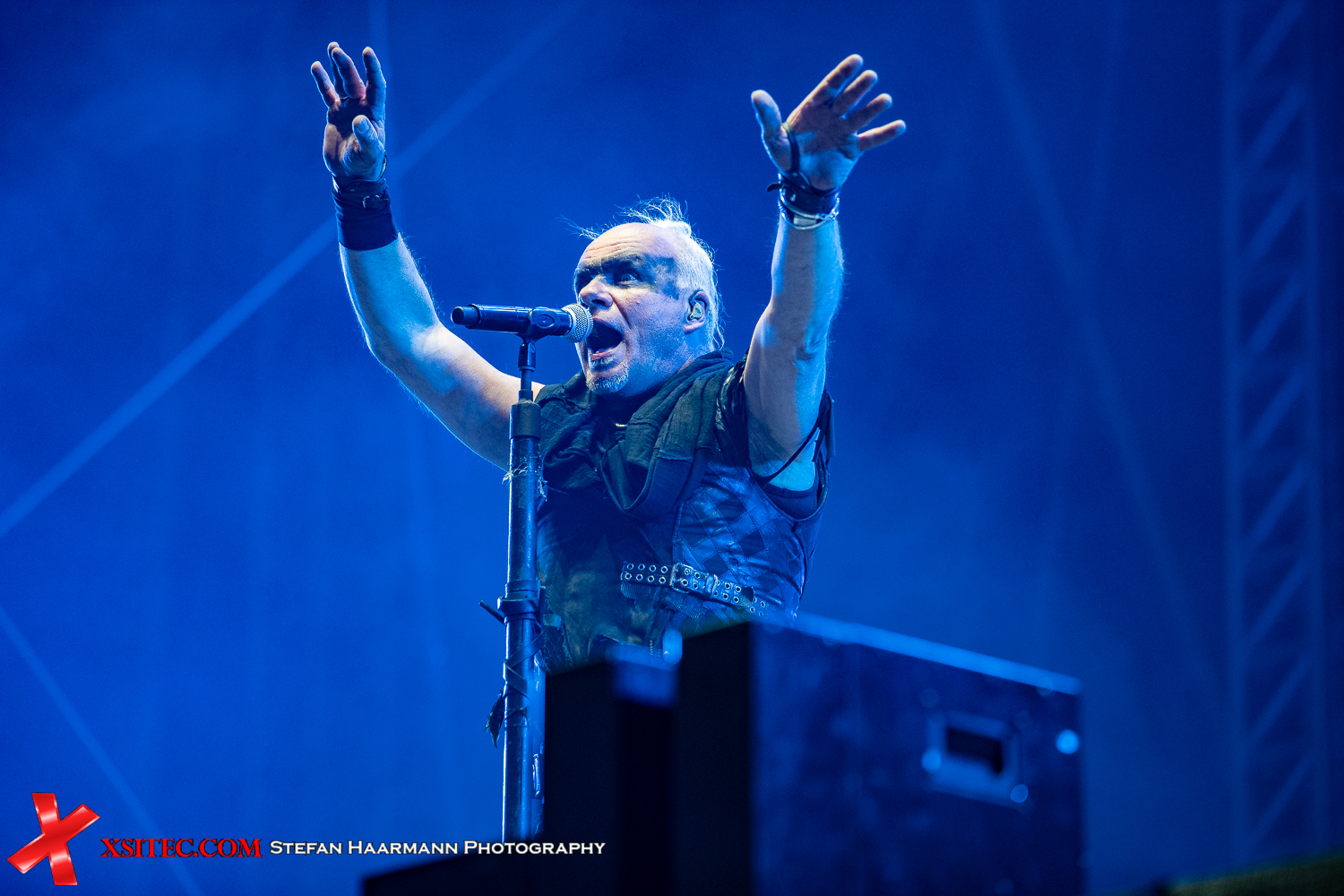 Die Deutschrocker von GOITZSCHE FRONT haben hier im Harz einen deutlichen Heimvorteil, ihre Heimat Bitterfeld ist ja quasi gleich nebenan. Entsprechend frenetisch wird die Band gefeiert und neben den vielen Fans vor der Bühne haben wir Fotografen unvermittelt Besuch einer Polizistin in Uniform, die es sich nicht nehmen lässt, den Gig teilweise per Handy mitzufilmen. Tja, auch PolizistInnen sind Menschen, eine Binsenweisheit, die man nicht aus den Augen verlieren sollte.