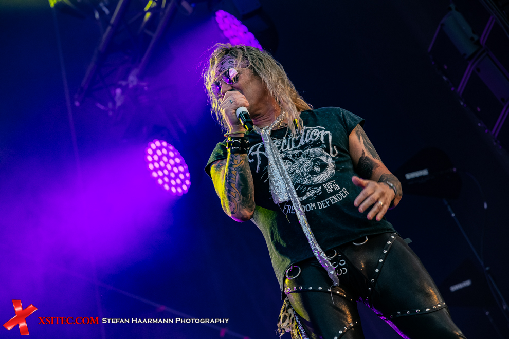 Zumindest ist das mit Blick auf die Reaktion der ZuschauerInnen mein persönlicher Eindruck. Dass die Band um Shouter Micheal Starr schon immer ein Faible für extrovertierte Show und banal-vulgäre Texte hatte, dürfte allgemein bekannt sein. Dass diese Mischung auf einem Festival wie dem ROCKHARZ aber dermaßen explosiv zündet, hätte ich in dieser Form nicht erwartet. Crowdsurferinnen ab der ersten Sekunde des Sets, die sich im Bühnengraben sammeln, um später mit der Band deren Hit „17 Girls In A Row“ auf der Bühne feiern zu dürfen und selbst eine grüne Mülltonne schafft es bis ganz nach vorn, nicht etwa leer, sondern zum Erstaunen von Michael Starr „bemannt“, was beim Sänger der Band für einen Lacher sorgt, bei den immer gut gelaunten Grabenschlampen (nicht etwa despektierlich gemeint, sondern der selbst gewählte Name der Grabensecurity), Entsetzen hervorruft.