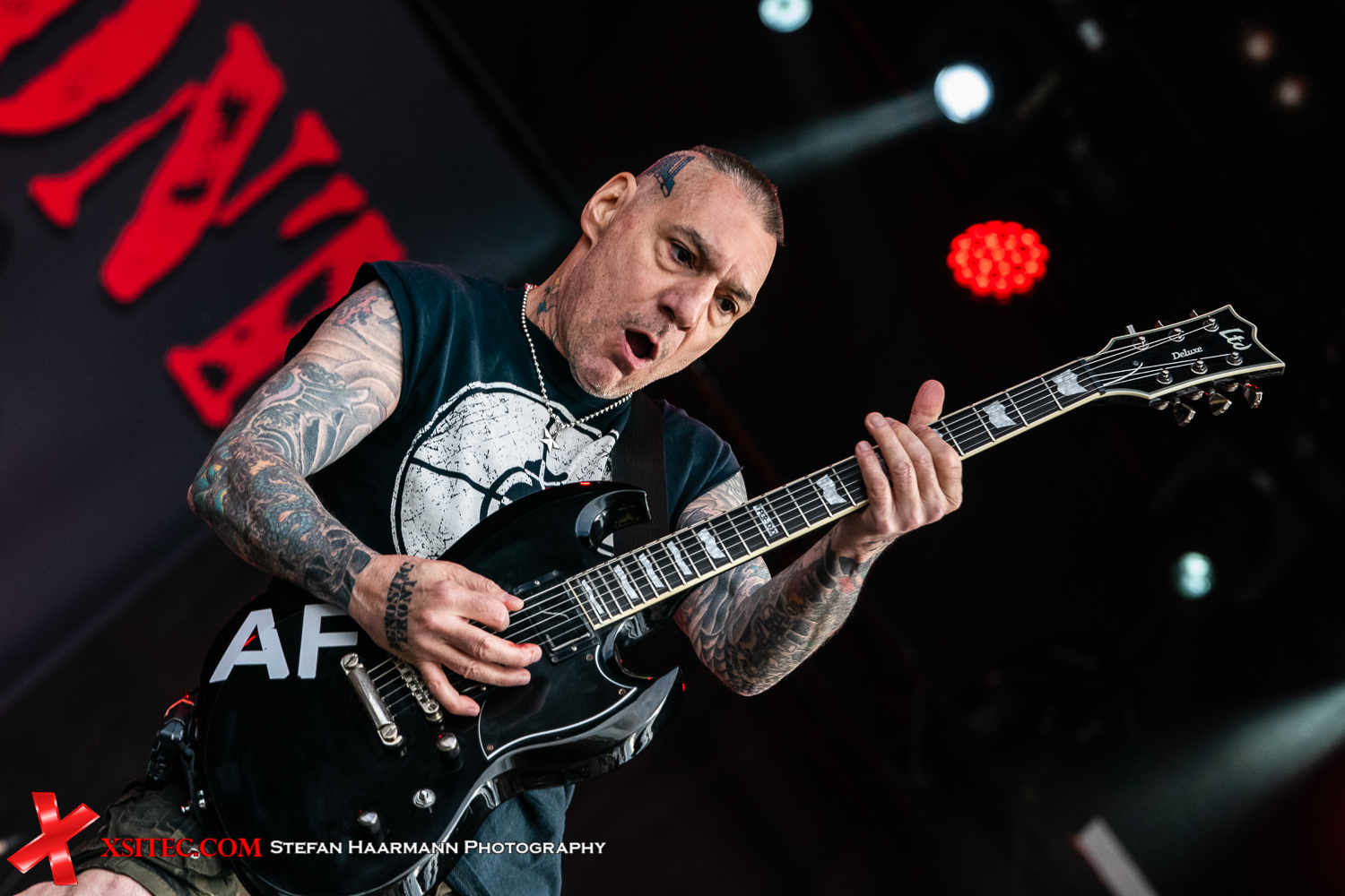 Und es geht Schlag auf Schlag weiter: Der straffe Zeitplan wird exakt umgesetzt und als die Belgier von EVIL INVADERS auf die Bühne gehen, ist das Infield trotz der immer noch frühen Stunde komplett gefüllt. Trash-Metal mit Speed-Metal Elementen steht auf dem Programm und wird hier dermaßen perfekt in Szene gesetzt, dass es die ersten Circle-Pits zu besichtigen gibt. Ob die Bandmitglieder von AGNOSTIC FRONT tatsächlich Agnostiker sind, sei mit Blick auf die Text einmal dahingestellt -unterhaltsam ist die Kapelle in jedem Fall.