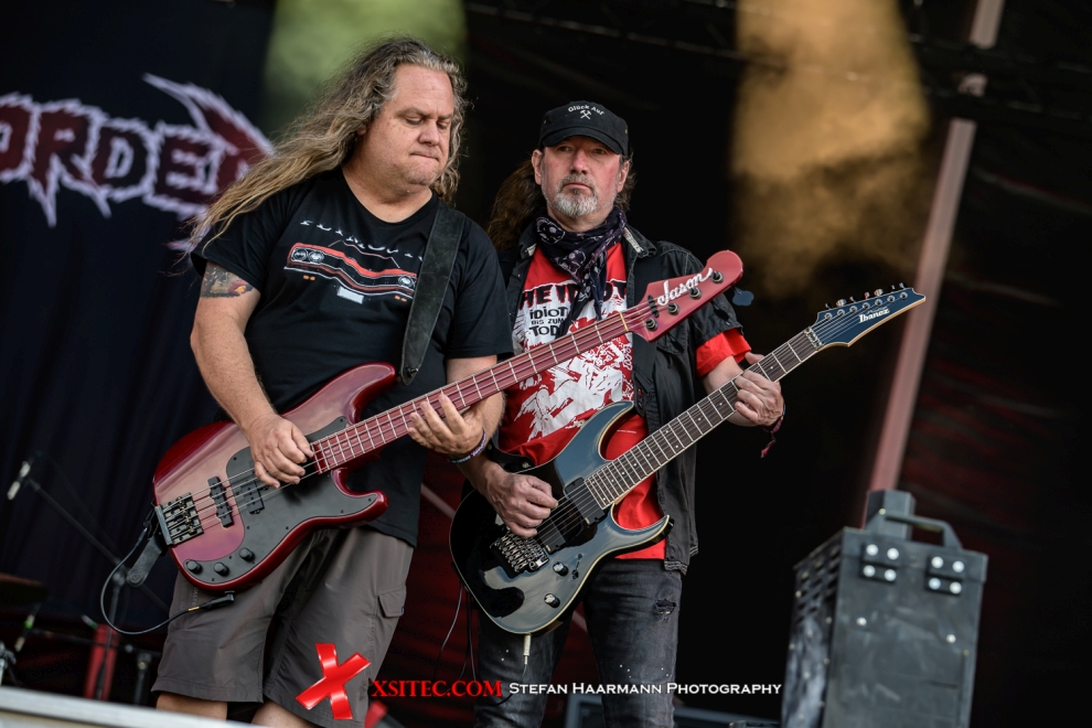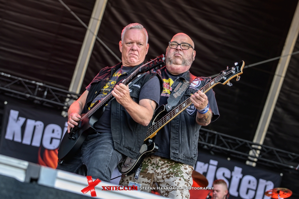Als nächste an der Reihe sind die KNEIPENTERRORISTEN, die bereits seit 1998 die Bühnen der Republik beackern und mit ihrem Partyrock, Stichwort: „Nüchtern bin ich schüchtern“ einen Nerv des Party-Völkchens vor der Bühne treffen. Gleiches gilt für EXHORDER, Urgesteine des Thrash-Metals, die auch Groove-Metal und Punkanleihen in die Songs einfließen lassen. Diese Mixtur kommt bei den Fans vor der Bühne ausgesprochen gut an, was den bärbeißigen Frontmann gegen Ende des Gigs dann doch noch versöhnlich stimmt und ein „We love you, ROCKHARZ“ entlockt.
