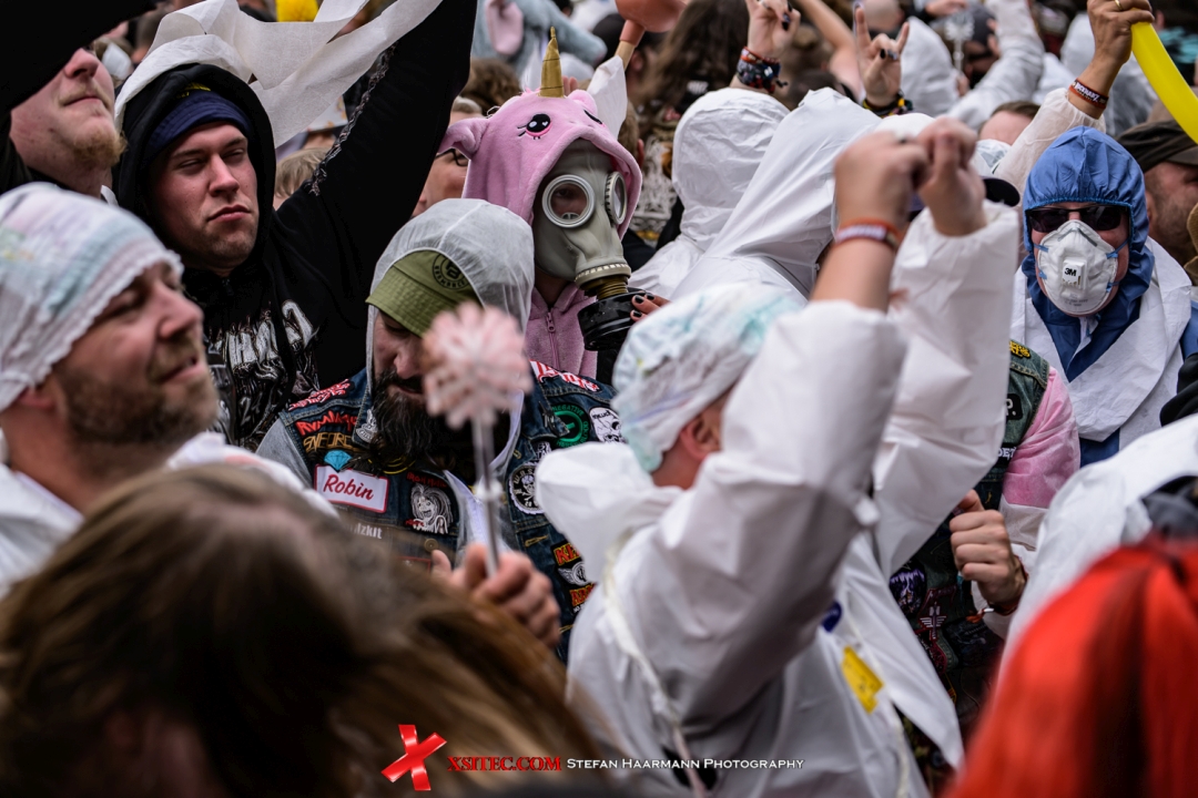 em -t mehr) ist ein Abführmittel, womit der Kreis sich wieder schließt. Na denn. Die Fans vor der Bühne haben sich das Outfit der Band zum Vorbild genommen: Ganzkörper-Kondome und Gasmasken dominieren die Szenerie, dazu gibt es Klopapier in allen Farbschattierungen, das wechselseitig von der Bühne ins Publikum und wieder zurück geschleudert wird. Großer Sport.