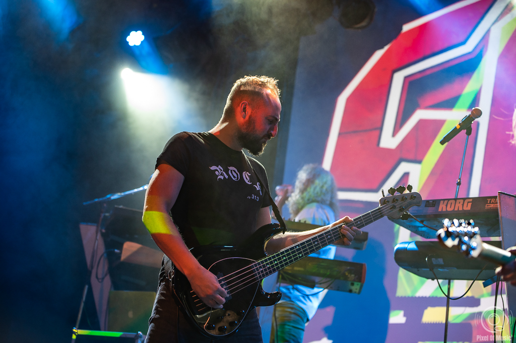 Neben seiner Haupttätigkeit als Frontmann und Sänger, sowie Keyboarder, hat Sadler sich zu „Humble Stance“ dann auch noch den Bass umgeschnallt. Mir schien, der knallte etwas mehr rein, als der von Dusty Chesterfield. An der einen Basssaite weniger bei Sadler wird es wohl nicht gelegen haben… ;-)