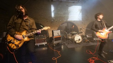 Den unerwarteten Höhepunkt des Festivals als schlüssiges Gesamtkunstwerk stellte indes am ersten Tag der überraschende Auftritt des kurzfristig ins Programm gerutschten BRIAN JONESTOWN MASSACRES dar. Zwar wohnt BJM-Mastermind ANTON NEWCOMBE seit einiger Zeit über dem Büro des 8mm-Labels – welches das Festival ja ausrichtet – war aber von der Einladung offensichtlich so überrascht, dass es zwei Gitarristen brauchte, um ihm seine Retro-12-String-Gitarre zu stimmen und er selbst benötigte erst mal 10 Minuten, seine Text-Sheets auf einem Notenständer zu sortieren. Dann aber geriet das Set der 6-köpfigen Band (inklusive hauptberuflicher Tambourinistin) zu genau jener psychedelischer Retro-Rock-Dröhnung, welche die BJM-Fans auch erwartet hatten. Immer wieder faszinierend, wie das BJM es schafft, auch nach 18 Studioalben immer noch auf einem einzigen Gitarrenriff basierende epische Rocknummern zu erschaffen, die keine Sekunde Langeweile aufkommen lassen.