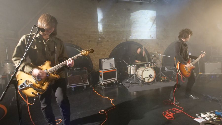 Den unerwarteten Höhepunkt des Festivals als schlüssiges Gesamtkunstwerk stellte indes am ersten Tag der überraschende Auftritt des kurzfristig ins Programm gerutschten BRIAN JONESTOWN MASSACRES dar. Zwar wohnt BJM-Mastermind ANTON NEWCOMBE seit einiger Zeit über dem Büro des 8mm-Labels – welches das Festival ja ausrichtet – war aber von der Einladung offensichtlich so überrascht, dass es zwei Gitarristen brauchte, um ihm seine Retro-12-String-Gitarre zu stimmen und er selbst benötigte erst mal 10 Minuten, seine Text-Sheets auf einem Notenständer zu sortieren. Dann aber geriet das Set der 6-köpfigen Band (inklusive hauptberuflicher Tambourinistin) zu genau jener psychedelischer Retro-Rock-Dröhnung, welche die BJM-Fans auch erwartet hatten. Immer wieder faszinierend, wie das BJM es schafft, auch nach 18 Studioalben immer noch auf einem einzigen Gitarrenriff basierende epische Rocknummern zu erschaffen, die keine Sekunde Langeweile aufkommen lassen.
